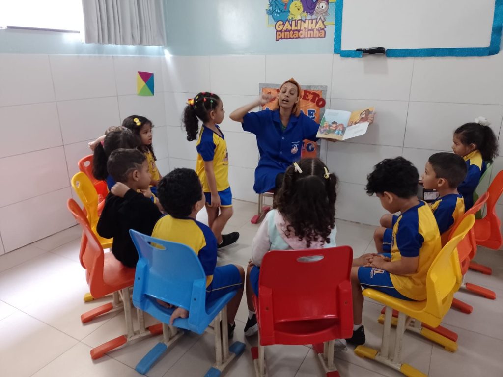 Momento da leitura com a turma do Jardim I. Sabemos o quanto a leitura pode influenciar positivamente no aprendizado das crianças, influenciando na criatividade, no desenvolvimento da fala e no vocabulário.